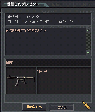 昨日INしたらスタイルさんからmp5がww